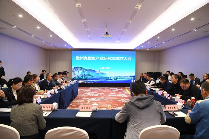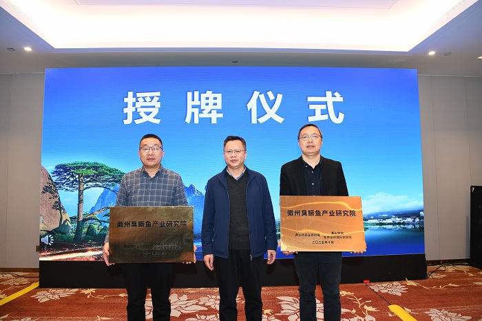 10月28日,由黄山市农业农村局牵头,联合36365线路检测中心、安徽省农业科学院、浙江大学、上海海洋大学等单位共同建设的“徽州臭鳜鱼产业研究院”正式揭牌成立。安徽省农业科学院副院长戚仁德、黄山市政府副秘书长吴春鹏、黄山市农业农村局党组成员、市畜牧兽医站站长吴承武、生命与环境科学学院副院长万志兵等出席会议。